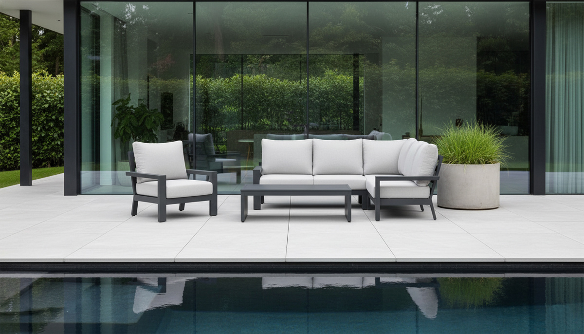 Jádrem sedací soupravy Venue6 je robustní hliníková konstrukce, která zaručuje mimořádnou pevnost, stabilitu a dlouhou životnost. Hliník je známý svou odolností vůči povětrnostním vlivům, jako je déšť, slunce a mráz, a zároveň je rezuvzdorný. Díky nízké hmotnosti je nábytek snadno přenosný, což oceníte při sezónních úpravách nebo úklidu. Povrchová úprava hliníku navíc dodává nábytku sofistikovaný matný vzhled a usnadňuje jeho údržbu – stačí otřít vlhkým hadříkem.