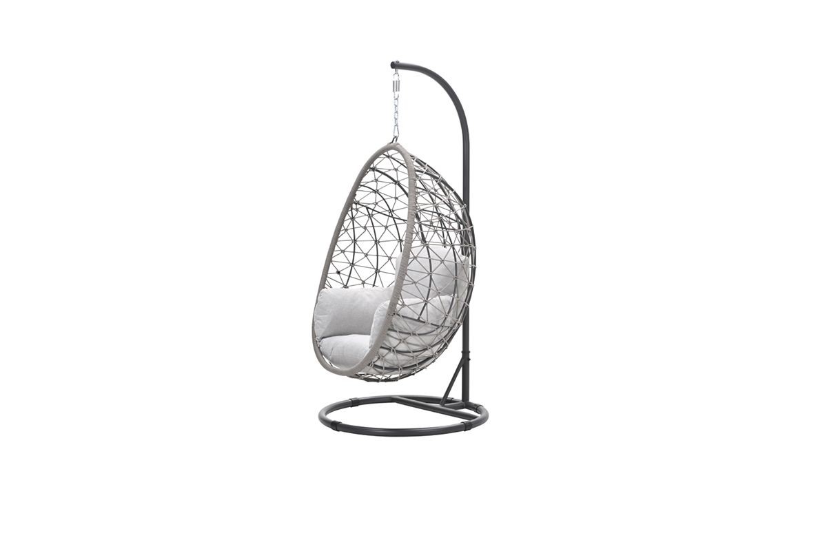 Kombinace moderních a vysoce kvalitních materiálů s výrazným designem zajišťuje hravý, ale zároveň luxusní vzhled. Houpací závěsné křeslo Sirrea je nejen poutačem pro vaši zahradu, ale hodí se i do interiéru. Závěsné křeslo ve tvaru vajíčka je vyrobeno z hliníkového rámu, který je opleten designovým lanem. Tento syntetický materiál je pevný, mimořádně odolný vůči povětrnostním vlivům a vysoce stálobarevný. Robustní ocelový rám, na kterém vajíčko visí, je opatřen ochrannou práškovou vrstvou. Součástí je také pohodlné polstrování s vodoodpudivou úpravou. Rozměry rámu jsou Ø90 x 195 cm a koše 88 x 128 cm.